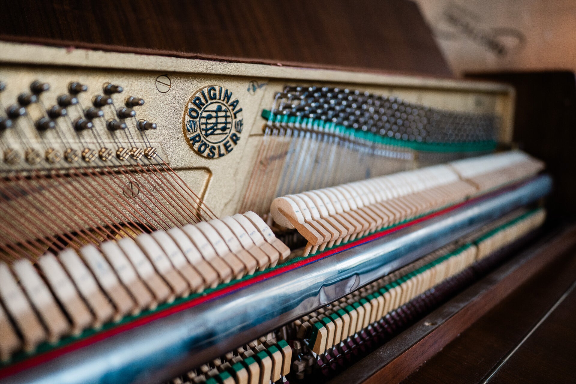 Deze Rösler kan je technisch gezien beschouwen als een nieuwe piano: Er werd sinds de aankoop namelijk nooit op gespeeld: Zelfs het originele afdekdoekje van de toetsen zit er bij… Rösler was voor WO II een zelfstandig pianomerk, dat tijdens de communistische periode van Tsjecho-Slowakije genationaliseerd werd. Het is een eenvoudige maar super stemvaste en betrouwbare piano die je nooit in de steek zal laten. Aangezien de piano nooit bespeeld werd, kan je nu dus nog horen hoe de piano als nieuw moet hebben geklonken ruim 50 jaar geleden.